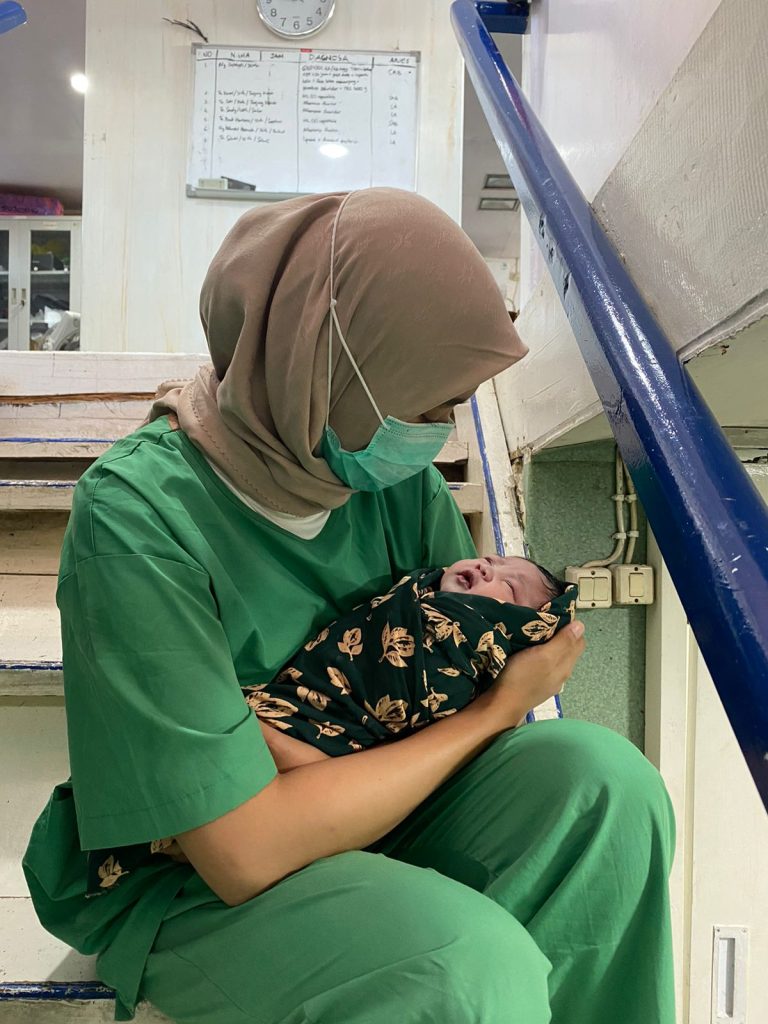 Salah satu bayi yang dilahirkan di kamar operasi di lambung kapal RSTKA.