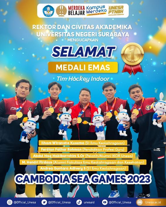 mepnews.id – Tiga medali diraih tim Universitas Negeri Surabaya (Unesa) yang tergabung dalam kontingen Indonesia dalam SEA Games 2023 di Kamboja. Peluang menambah medali masih ada seiring terus belangsung berbagai lomba.