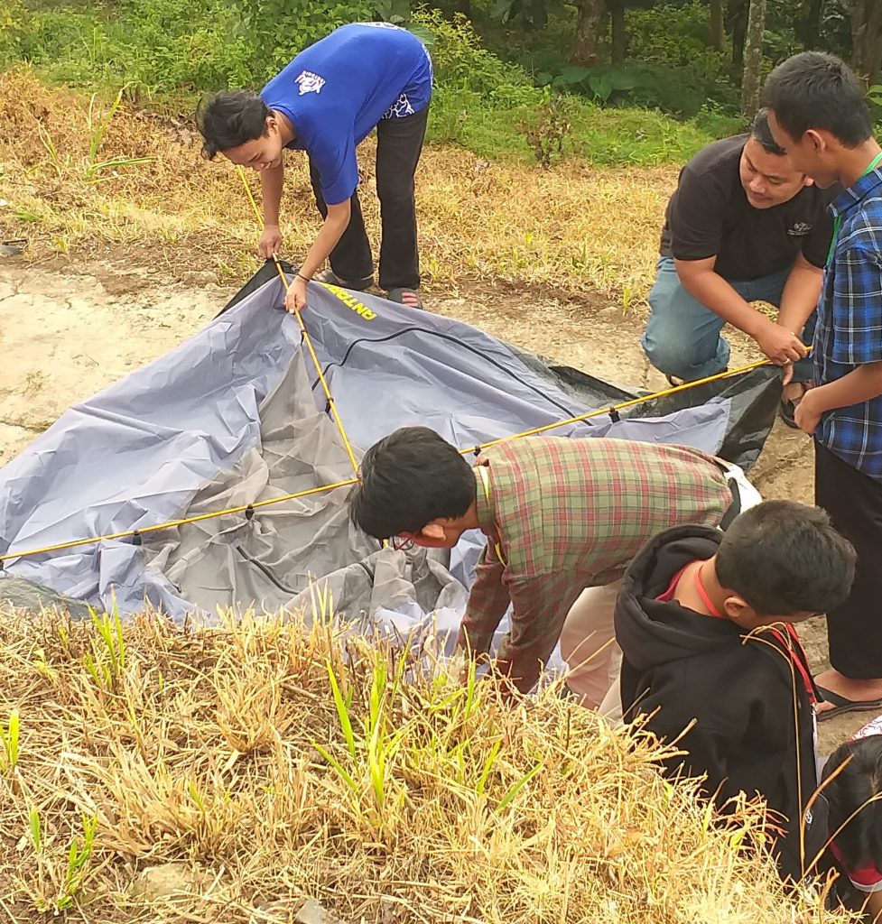 Mendirikan tenda melatih kerjasama dan kemandirian.